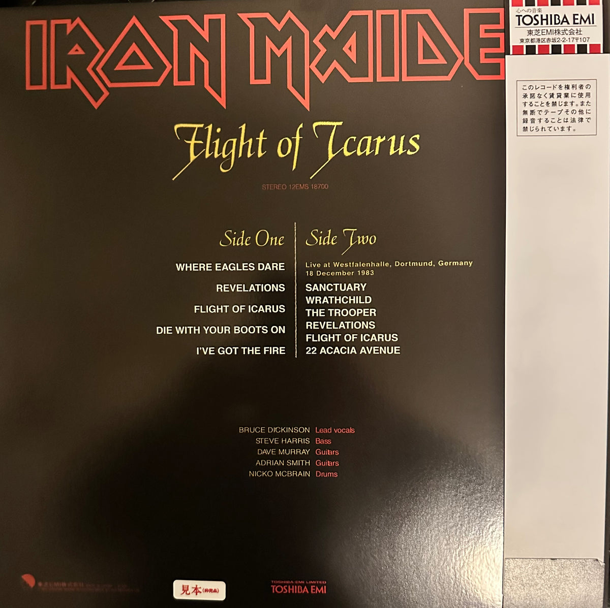 Iron Maiden - Flight of Icarus - Live and Studio Tracks - Japanese Toshiba Maxi Single - Colored Vinyl (Clear, White, Blue or Yellow)With Insert and Obi