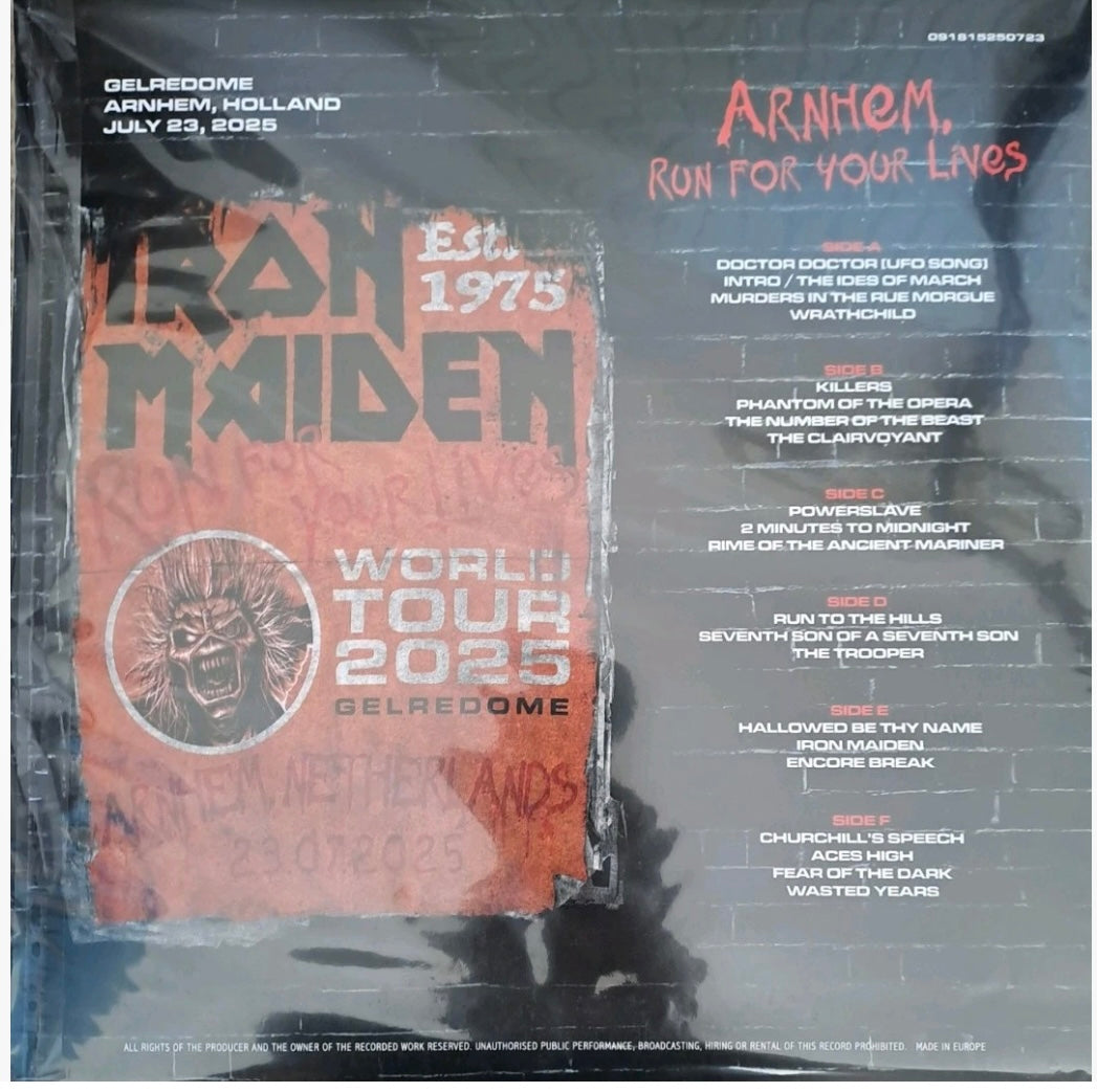 Iron Maiden - Run For Your Lives - Arnhem, Holland July 23, 2025 - 3LP Colored Vinyl With 16 Page Booklet and Tour Poster Replica.