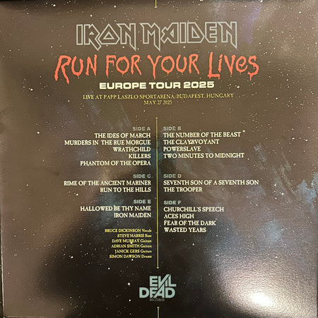 Iron Maiden - Run For Your Lives Europe (Budapest) 2025 - 3LP Trifold Sleeve Colored Vinyl (Red or Blue)