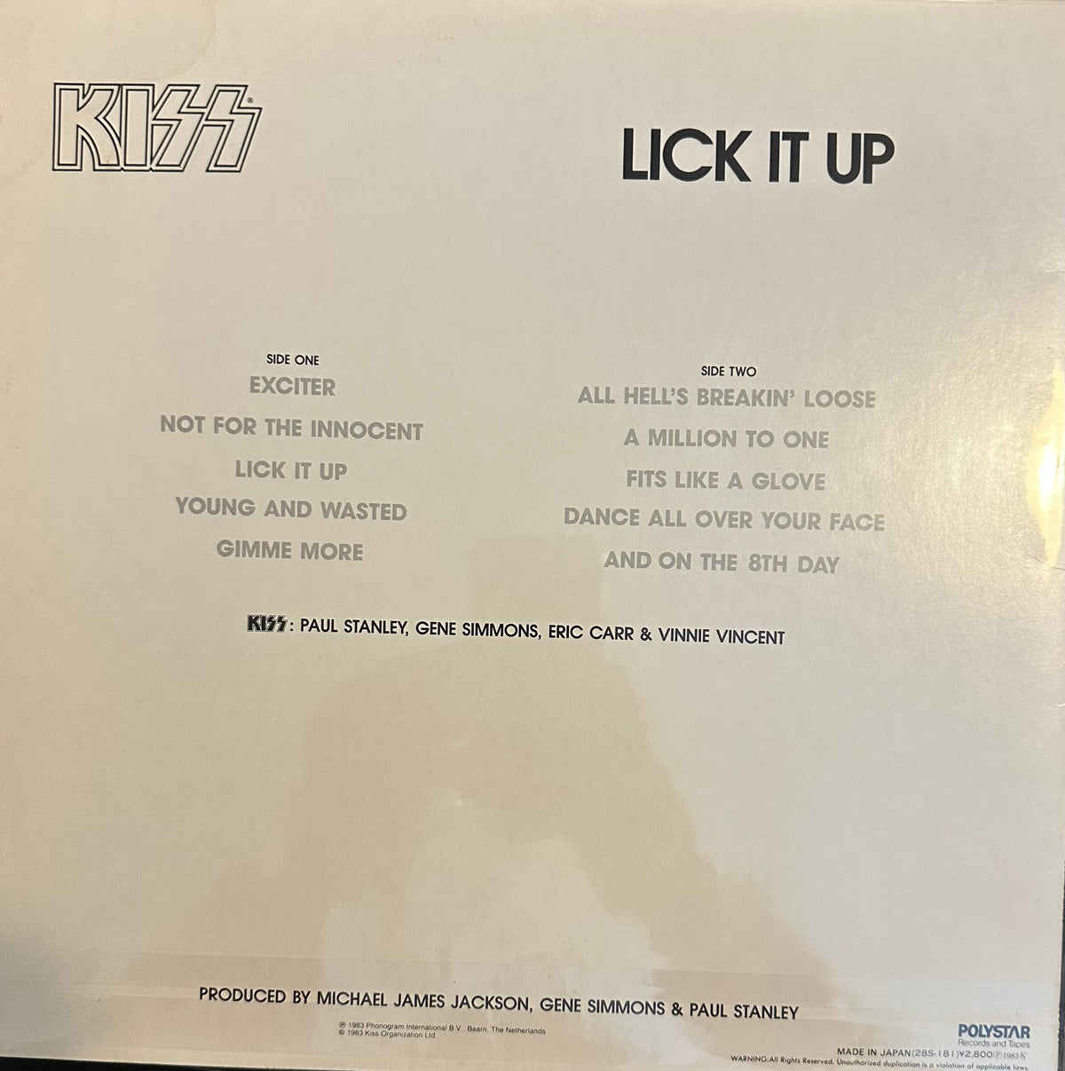 (Used) KISS - Lick It Up - Original Japanese Press - Near Mint Condition !!!! Not the KissOnline reissue!