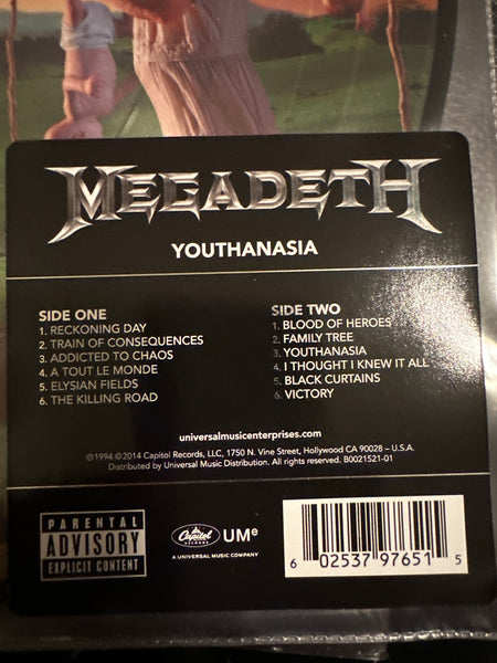 The unnavoidable spiritually-damaged roar is audible immediately. Before even a single lyric of YOUTHANASIA's lead track "Reckoning Day" is uttered, the fierce twin guitar attack and the pounding double-bass drums betray the band's poetic motives. By the time singer/lyricist Dave Mustaine admits that "Life's fabric is corrupt/Shot through with corroded thread" on YOUTHANASIA's second track--and first single--"Train Of Consequences," Megadeth's plan of action is more than obvious. Disillusionment is at the core of life, Mustaine warns today's youth, recognize it early on before it grinds you down. While such themes are an every day part of the speed-metal genre, YOUTHANASIA tackles the subject of maturing in the face of adversity with the skill of knowing professionals. Fitted into the album's sleek and streamlined production are arguments that straddle the border between complexity and naivete, but whose overall thesis is just as important to its alienated audience as gangsta rap is to its own. And while the grandeur of tracks like "A Tout Le Monde" or "Elysian Fields" can be off-putting, they ultimately become life-affirming gestures for those who actually listen.