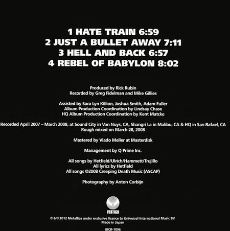 unofficial import reissue on colored vinyl - four unreleased songs recorded in 2008 during the Death Magnetic sessions.