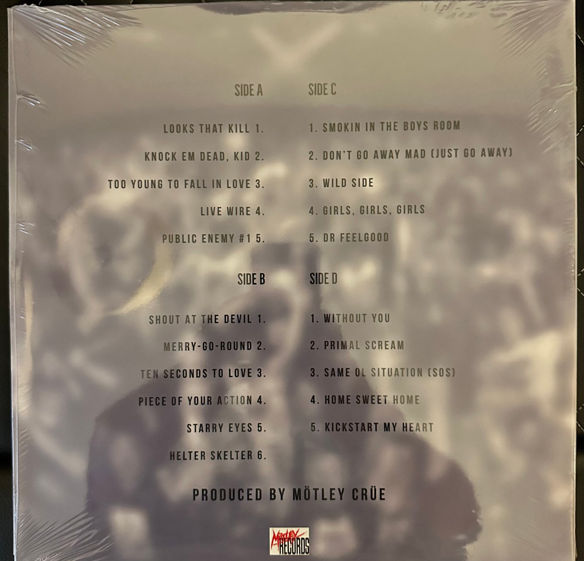 LIVE: ENTERTAINMENT OR DEATH. First official live album by American heavy metal band Mötley Crüe. Rel Nov 23, 1999, it is a compilation of recordings from 1982 to 1999. However, it contains no songs from the band's 1994 album Mötley Crüe, nor 1997's Generation Swine. Colored vinyl unofficial