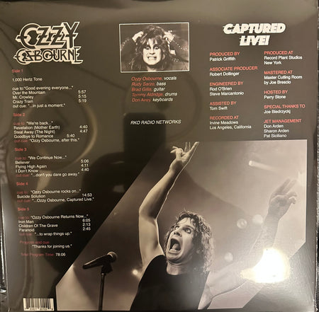 Ozzy Osbourne - Captured Live! - 3LP Gatefold Black Vinyl - Full Radio Show From Irvine California - Opened In Shrink Wrap