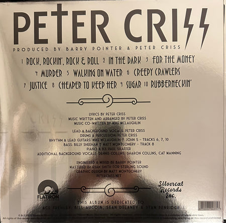 After numerous world tours, platinum albums, and KISS merchandise, Peter Criss left the band in 1980. He later embarked on a solo career that led to the release of Out of Control, Let Me Rock You, and most recently One for All, which landed at number 35 on the Indie charts. By popular demand, the original lineup of KISS reunited in 1995 for MTV's KISS Unplugged, which led to 1996's most successful Worldwide Alive Reunion Tour, 3 Kiss tours followed for Peter (Psycho Circus, the Farewell Tour, and a co-headling sojourn with Aerosmith). With guest appearances by John 5 (Motley Crue, Rob Zombie), Billy Sheehan (David Lee Roth), Paul Shaffer (David Letterman) and Mike McLaughlin, "Peter Criss" represents the Catman's return to form, and his most rock driven solo album ever.2. In The Dark