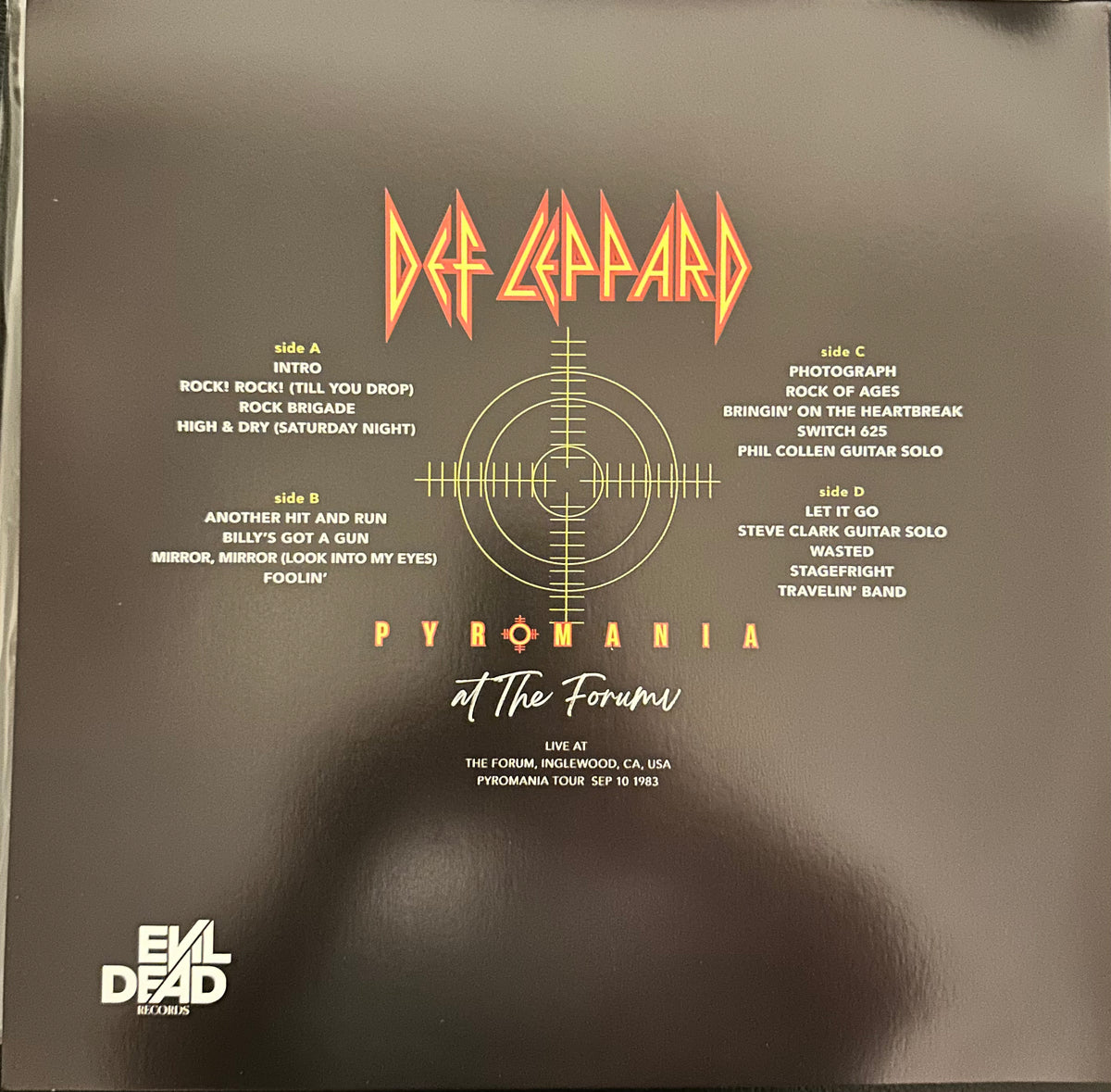 Def Leppard - Pyromania Live at the Forum - 2LP Black Vinyl Gatefold - Test Pressing