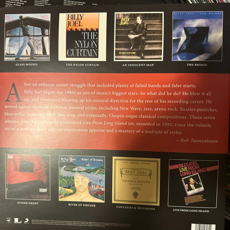 An 11LP deluxe box set, The Vinyl Collection, Vol. 2brings together Billy’s monumentally successful 1980s albums — Glass Houses, The Nylon Curtain, An Innocent Man, The Bridge, and Storm Front — alongside 1993’s River of Dreams, and for the first time on vinyl, an exclusive 2LP pressing of 2001’s Fantasies & Delusions, and the first-ever audio edition 3LP of Billy Joel – Live from Long Island.